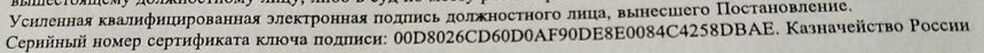 Что интересно — некоторые постановления не подписываются УКЭП должностного лица, нет штампа электронной подписи, а просто указан текст — документ подписан