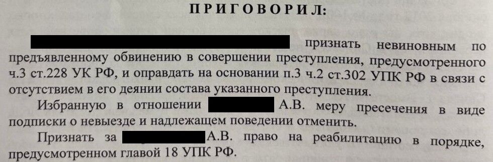 Обвиняемый в хранении наркотического средства d-Лизергид (ЛСД, ЛСД-25) в особо крупном размере по ч. 3 ст. 228 УК РФ оправдан с правом на реабилитацию