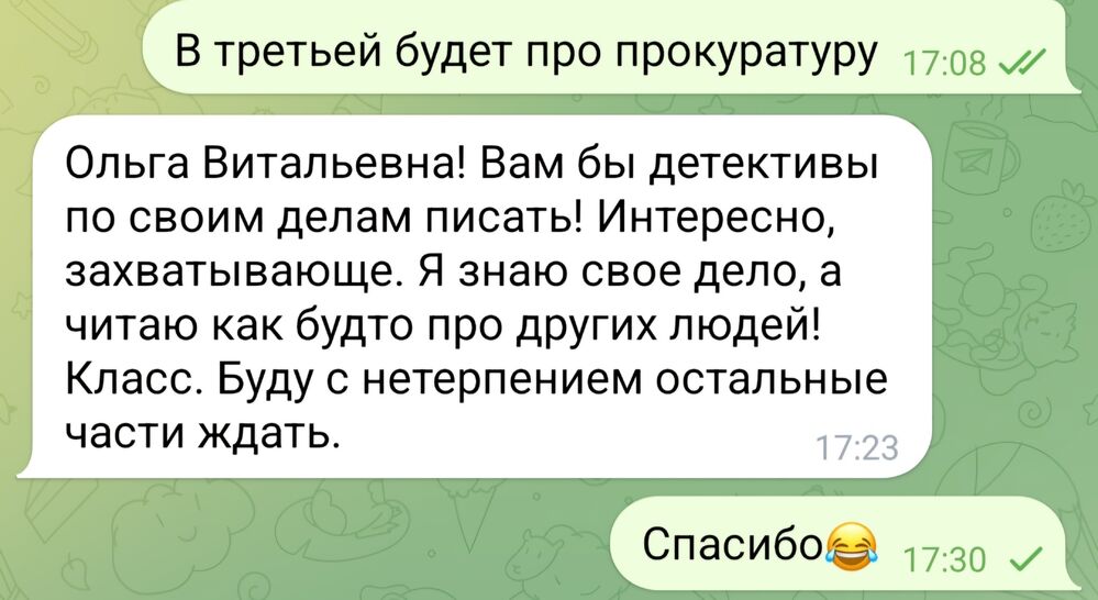 Уважаемая Ольга Витальевна, очень интересное дело! Вами была проделана большая работа, интересно почитать доводы прокуратуры на этот счет!