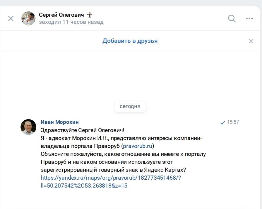 Пришлось написать владельцу этого офиса личное сообщение в соцсети — на всякий случай поинтересоваться, какое отношение он имеет к нашему сообществу и порталу.