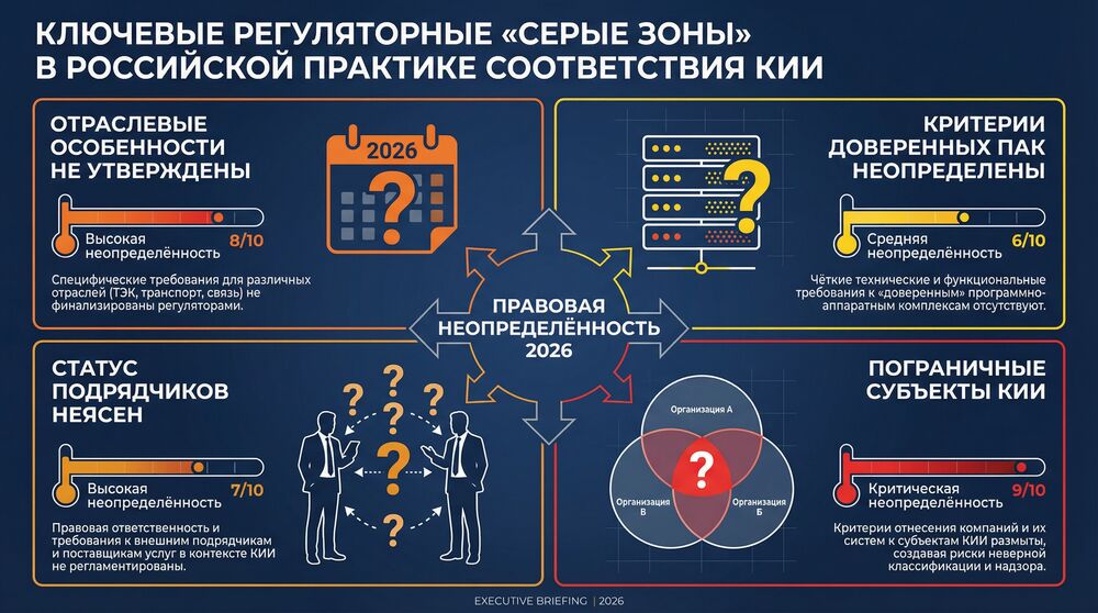 Темпоральный разрыв 2025-2026: методические материалы по новым правилам категорирования и отраслевым особенностям публикуются медленнее, чем вступают в силу сами требования — субъекты КИИ обязаны соблюдать нормы до появления полноценной методологии. Это зона высокой турбулентности.