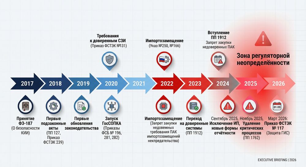 Система КИИ строится в условиях регуляторной турбулентности, методологических вакуумов и политических императивов.