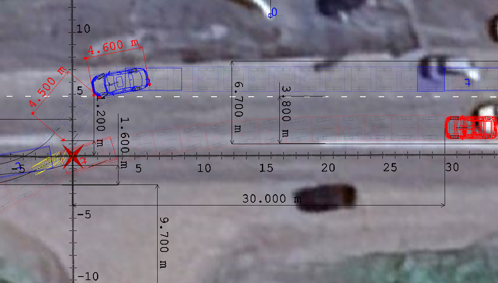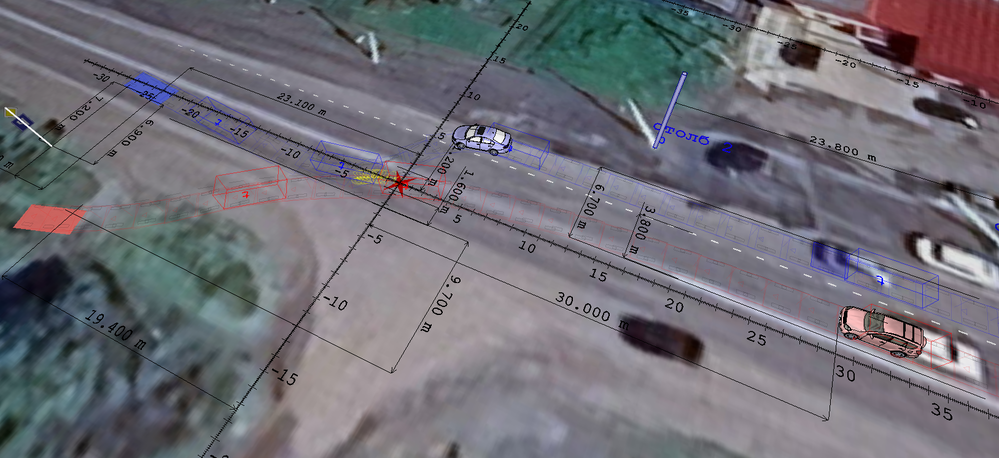 В соответствии с Общими положениями ПДД РФ п. 1.2 «Опасность для движения» — ситуация, возникшая в процессе дорожного движения, при которой продолжение движения в том же направлении и с той же скоростью создает угрозу возникновения дорожно-транспортного происшествия. На фото выше отражен момент возникновения опасности для движения водителю автомобиля Toyota, обусловленный начальным выездом автомобиля VW на полосу его движения. Масштабная реконструкция наглядно отражает удаление автомобиля Toyota до места столкновения в данный момент в значении 30 метров.