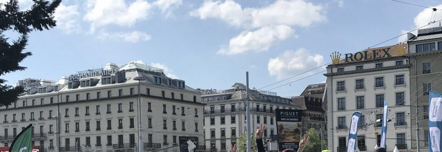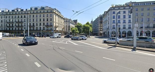Для его определения было проанализировано содержимое изображения. Архитектура зданий на заднем плане, позволяет предположить, что фото снято в центральноевропейском городе. На зданиях видны вывески Rolex и Piguet, что позволяет уточнить, что вероятное место съемки – Швейцария. Сервис Google StreetView позволил определить адрес места съемки – Швейцария, Женева, парк Жарден Англез с видом на дом 45 по улице Рон. Это пятиэтажное здание с буквами ROLEX на крыше. Ниже приведен снимок из сервиса Google Street View из этой локации.