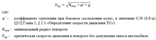 Применение: Для легкового автомобиля, двигавшегося со скоростью ~90 км/ч, критический радиус составляет около 114 метров. Это значит, что любой манёвр с меньшим радиусом на такой скорости неминуемо приводит к заносу.