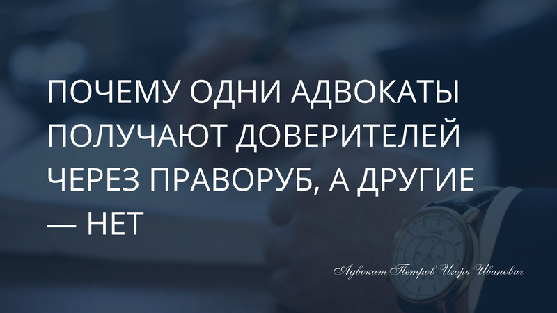 Уважаемый Игорь Иванович, приблизительно к такому выводу я пришел пару лет назад. На самом деле, по крайней мере в моем случае, напрямую с Праворуба не приходит много доверителей. Скорее единицы приходят. Правда все кто пришел с реальными делами, были сверх адекватные и с ними было интересно работать.
