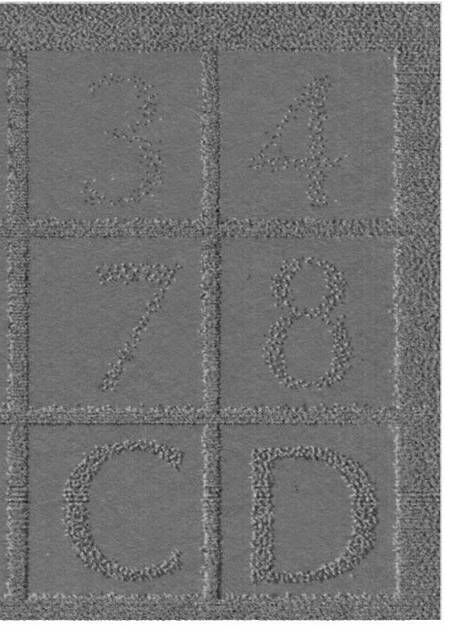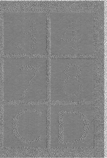 Рис. 11. Фрагмент документа, распечатанного на лазерном принтере HP Color LaserJet 3550 (сверху) и результат визуализации скрытой метки (снизу)