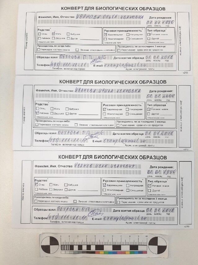 Для идентификации личности участника экспертизы разработан целый пакет документов, который заполняется в момент проведения забора.
