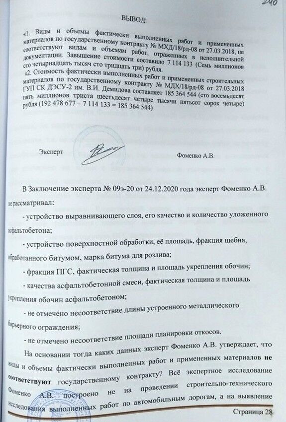 Выводы датированы 22 ноября 2021 года (то есть с разницей всего три дня с получением заключения экспертов, выводы которых легли в основу постановления о прекращении уголовного дела).
