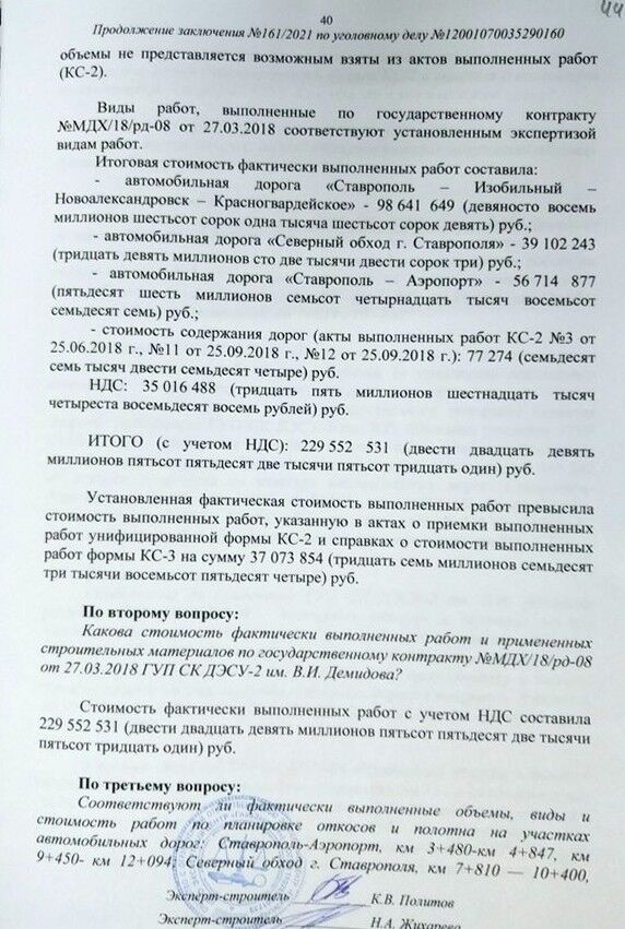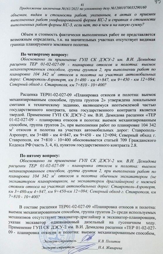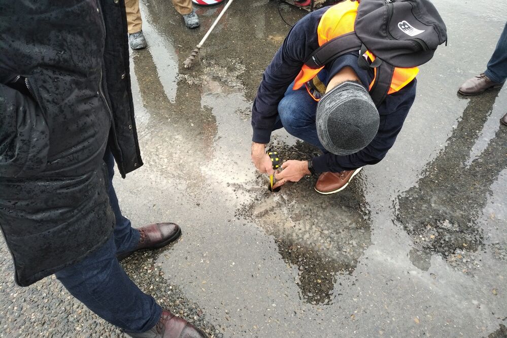 Экспертиза была проведена с участием подозреваемых. Вот, например, эксперты изучают толщину выравнивающего слоя асфальта в том месте, где (оперативной информации) он вообще не укладывался.