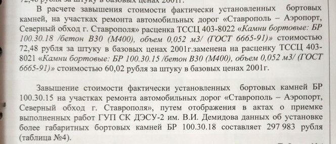 размерность бордюрного камня определяется шириной его нижнего основания, а не верхнего; размерность фактически использованного при ремонте дорог бордюрного камня полностью соответствует проектным решениям;