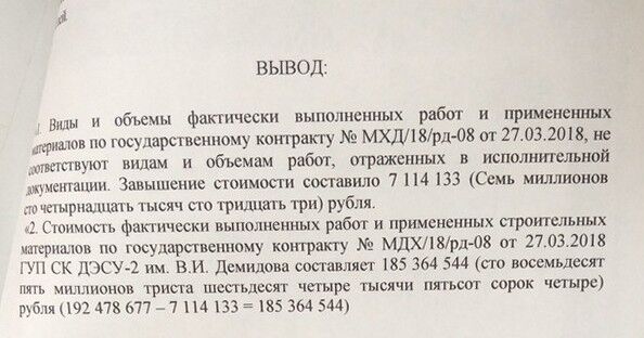 В Акте, естественно, содержались радующие заказчиков исследования сведения о том, что хищение денежных средств имело место способом завышения объёмов произведенных работ
