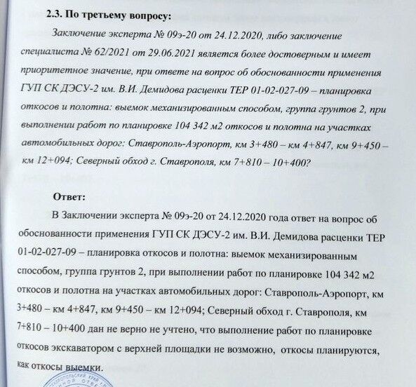 В-четвертых, адвокаты сформулировали и поставили перед специалистом в области именно дорожного строительства вопросы, а специалист сформулировал свои ответы, и даже дал рекомендации о формулировании вопросов для постановки их эксперту.