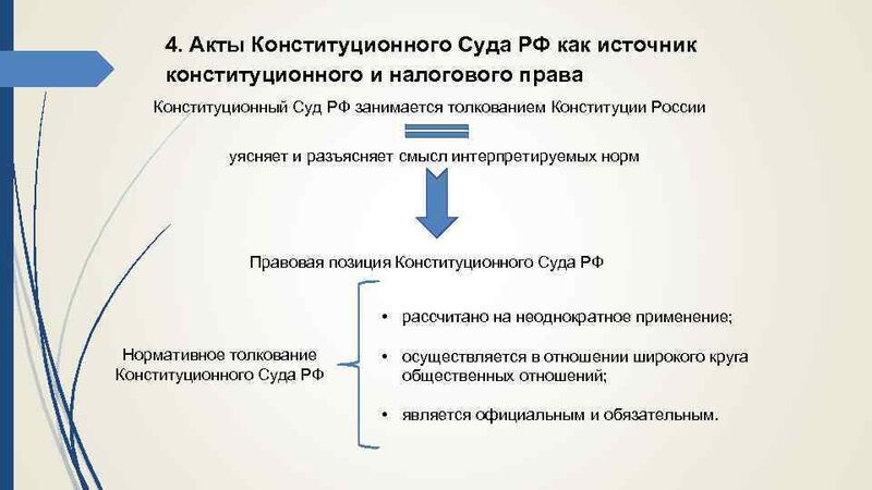 Между тем, недооценивать судебные акты КС РФ с правоприменительной точки зрения никак нельзя, поскольку даже высшие судебные инстанции РФ не могут применять нормы права в толкованиях, отличных от данных КС РФ. Именно осознание данного постулата придает уверенности в защите, построенной на позициях, изложенных КС РФ в его судебных актах.