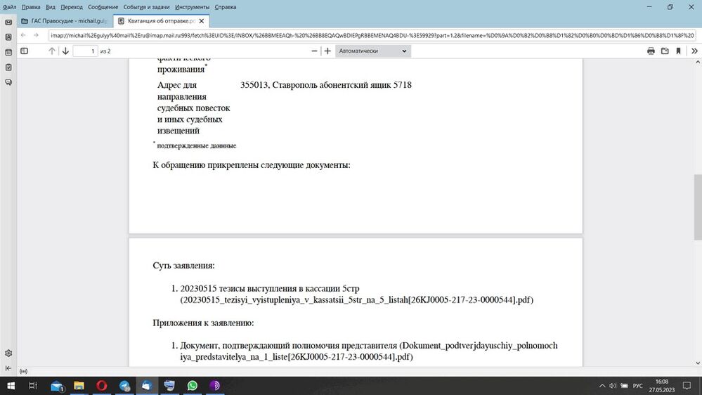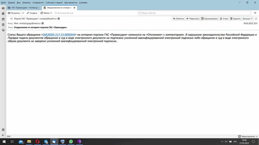 Уважаемый Михаил Михайлович, кроме того, что сама система ГАС «Правосудие» сделана людьми из некой «параллельной Вселенной», действительно, подписание документов УКЭП превращается в занимательный квест, поэтому использую возможности сайта «Почты России» — и нервы сберегу, и время.