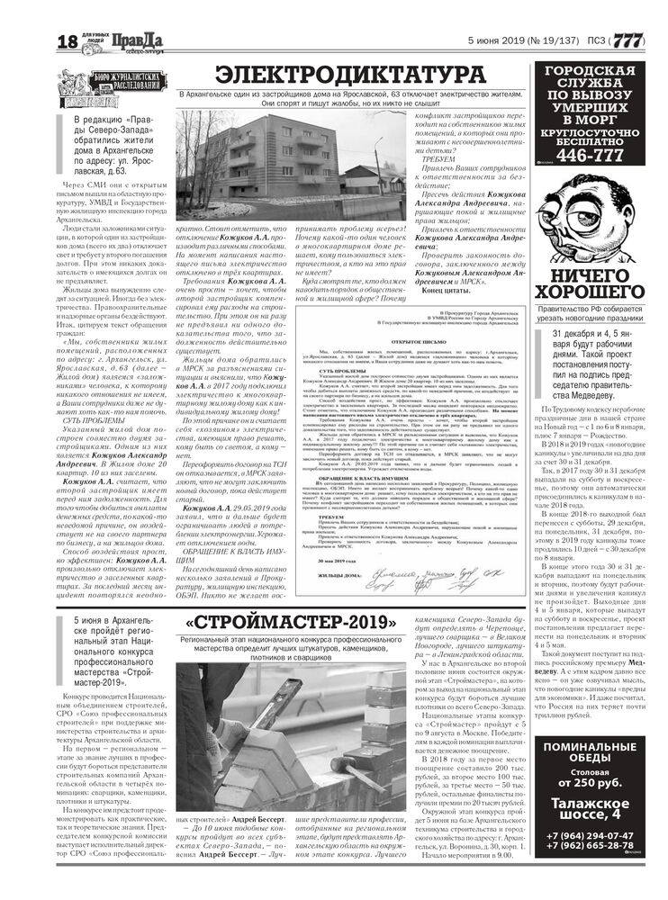 — в мае 2019 года Мой клиент сообщает, что Застройщик 1 отключает электричество в тех квартирах, которые она ранее продала.