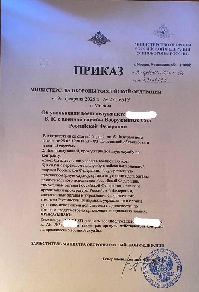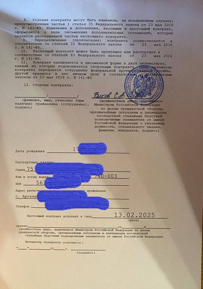 Не далее, как пару часов назад, мне экстренно позвонил мой давний знакомый военнослужащий и попросил провести правовую экспертизу документа. Со слов знакомого, его товарищ военнослужащий, заключивший контракт в МЛС, нашел московских юристов, которые помогли ему расторгнуть контракт, в связи с переводом в МЧС по месту жительства. Прислав мне контракт и фото приказа заместителя министра обороны РФ, которые попросил проверить на наличие признаков фальсификации.