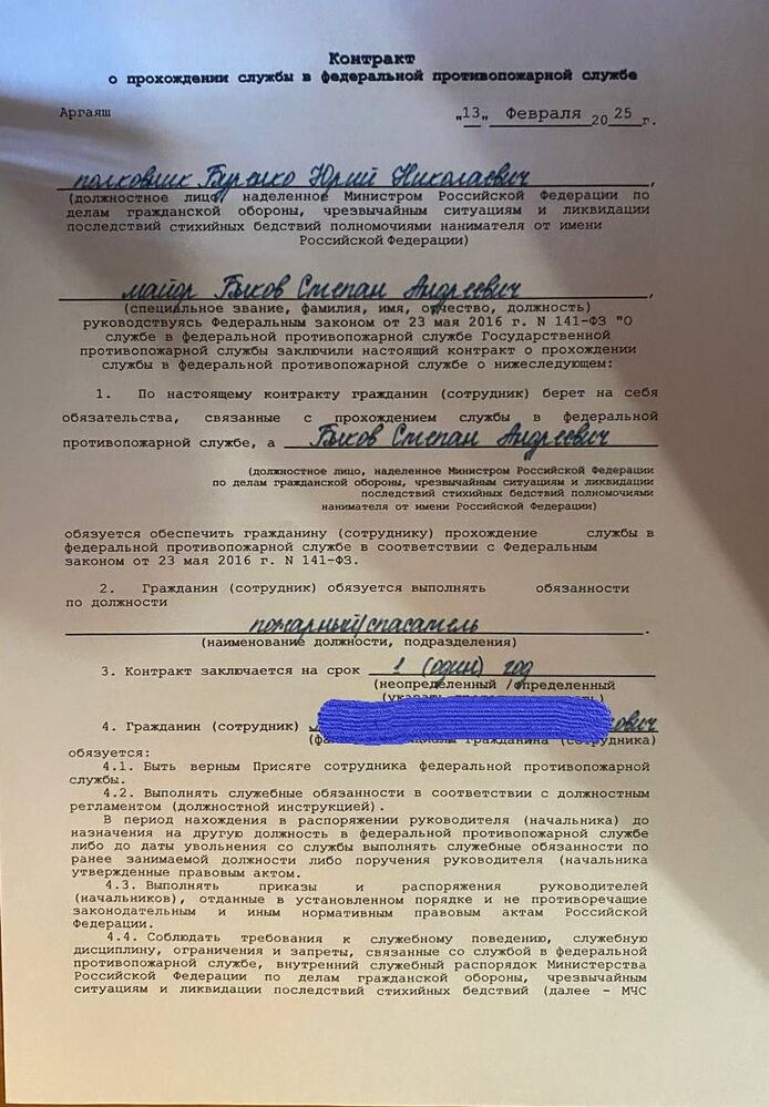А сейчас представляю Вашему вниманию контракт о прохождении службы в иной государственной организации, послуживший основанием для «издания» вышеуказанного приказа об увольнении с военной службы, который по удаленке военнослужащему помогли заключить уже другие военные юристы.