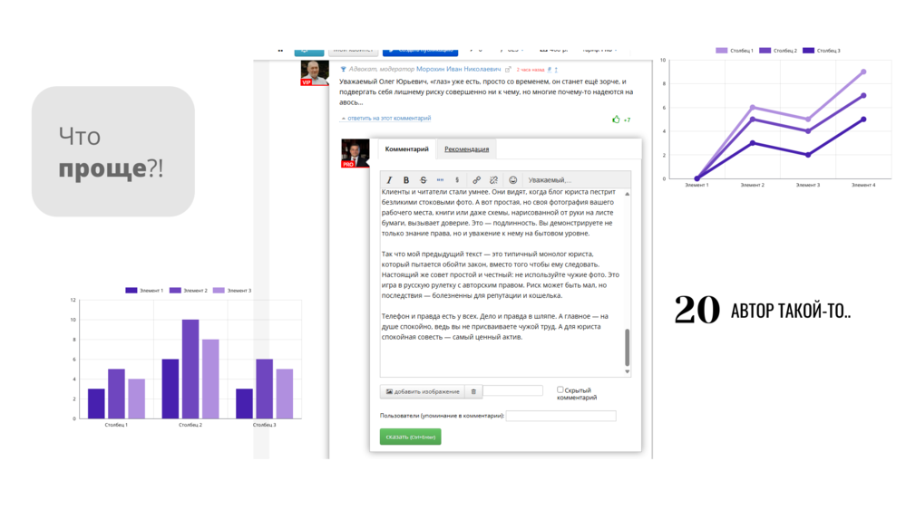 Клиенты и читатели стали умнее. Они видят, когда блог юриста пестрит безликими стоковыми фото. А вот простая, но своя фотография вашего рабочего места, книги или даже схемы, нарисованной от руки на листе бумаги, вызывает доверие. Это — подлинность. Вы демонстрируете не только знание права, но и уважение к нему на бытовом уровне.