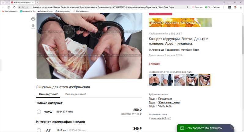 Несмотря на очевидную непричастность ООО «ПравоМедиа» к использованию указанного вами изображения, считаю необходимым заметить, что даже в случае возможного отсутствия у автора публикации доказательств легального приобретения спорного изображения, ваши требования, в качестве представителя правообладателя, являются чрезмерно завышенными, поскольку помимо свободного размещения того же изображения на множестве других сайтов, оно свободно продаётся самим автором по цене от 125 рублей (при пакетной покупке) до 2350 рублей (при пакетной покупке) в фотобанке «ЛОРИ» на странице: https://lori.ru/38981667