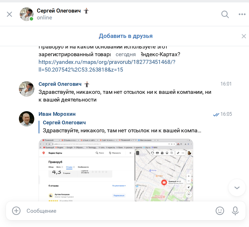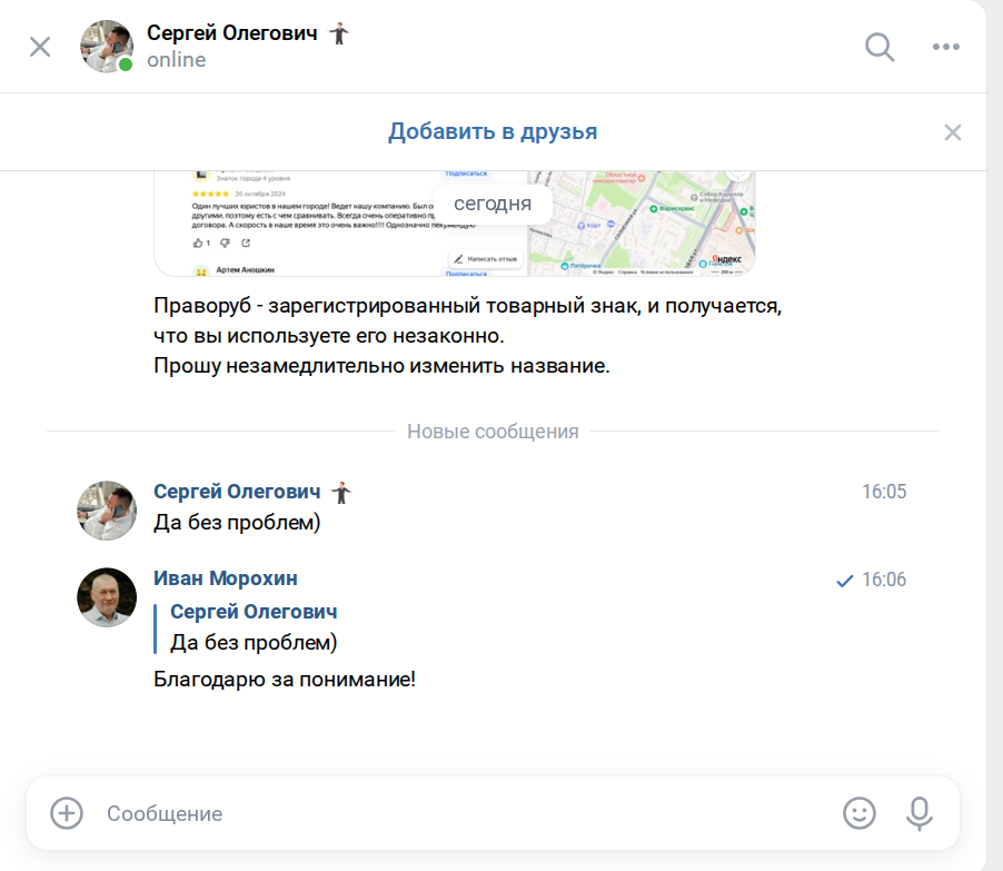 Пришлось написать владельцу этого офиса личное сообщение в соцсети — на всякий случай поинтересоваться, какое отношение он имеет к нашему сообществу и порталу.