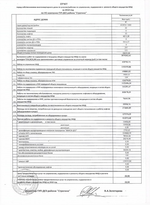 - сведения о расходах, понесенных в связи с оказанием услуг по управлению многоквартирными домами (по данным раздельного учета доходов и расходов).
