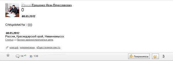 P.S. А публикацию г-на Ерошенко И.В. мы восстановили на основании п. 1.7 Пользовательского соглашения. «Дабы дурь каждого видна была» (Пётр Великий)
