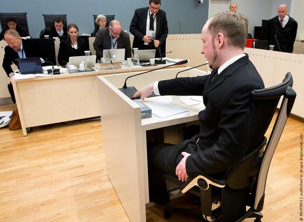 Андерс Беринг Брейвик убийца и неонацист в пострадавшей от гитлеровцев Норвегии — он не только не в клетке и без наручников, он еще и «приветствует» суд неонацистским приветствием.