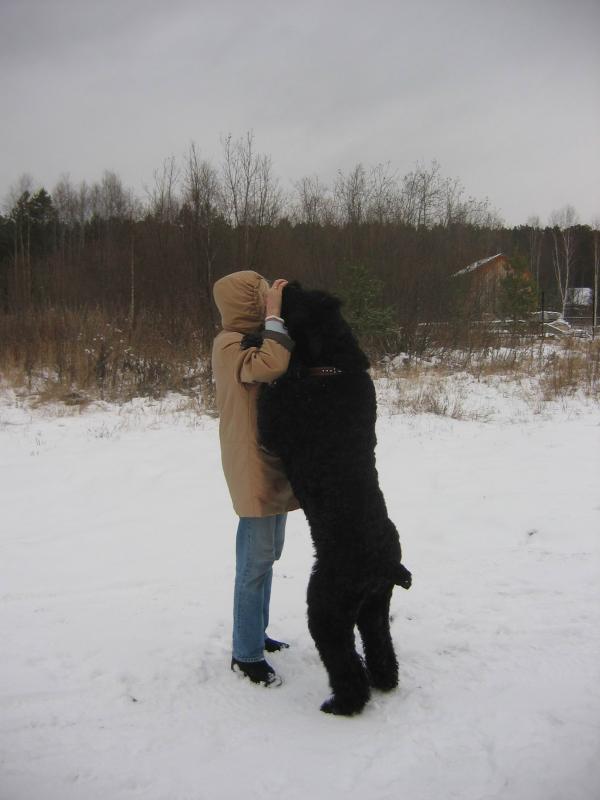 — 7 летний русский черный терьер, собака породы, специально выведенной для защитно-караульной службы. При этом необходимые курсы (Т1, ОКД) для социализации собаки пройдены. Напротив, курсы ЗКС (защитно-караульная служба) я не прошел, так сложилось. Пес, несмотря на вид, размер, предназначение очень добрый