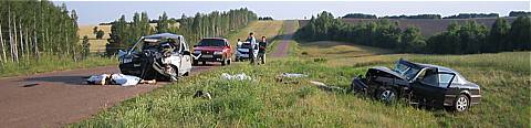 Признать ошибку, что-ли? Да нет, не буду. Из фотографии с места ДТП видно, как разбросало трупы, а вылетели они во время удара, после чего уже не загруженная машина развернулась.