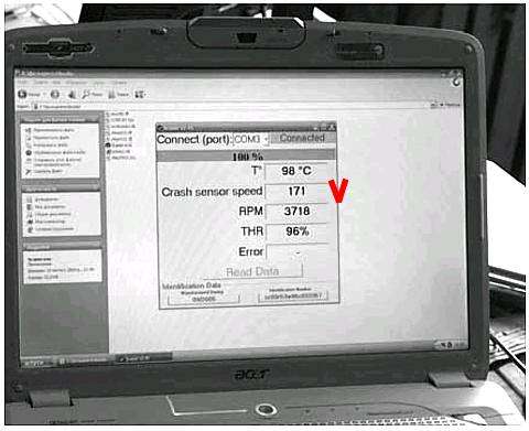 Скептик скажет, что мы-то не французы, куда, мол, до них … Хорошо, смотрим, что делают украинцы (статья из журнала «Судова инженерно-транспортна експертиза» в документах). Изымают электронный блок управления двигателем, подключают к компьютеру и результат на экране – скорость в момент удара 171 км/ч. Сами сделали, а не куда-то послали! Молодцы!
