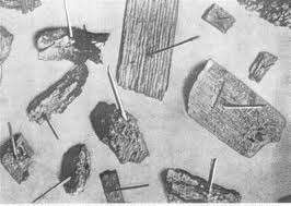 А вот тут соломинки пробившие древесину.