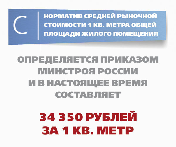 С — норматив стоимости 1 кв. метра общей площади жилого помещения по Российской Федерации, определяемый Министерством строительства и жилищно-коммунального хозяйства Российской Федерации;