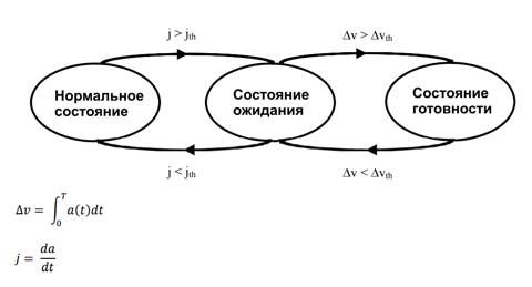 Блок-схема алгоритма, использующего параметры: замедление и рывок (толчок).