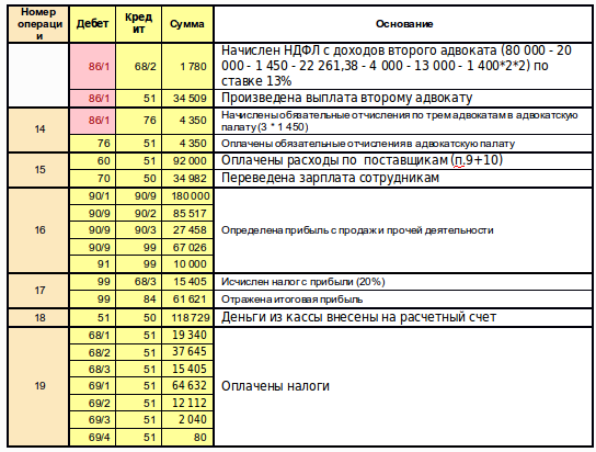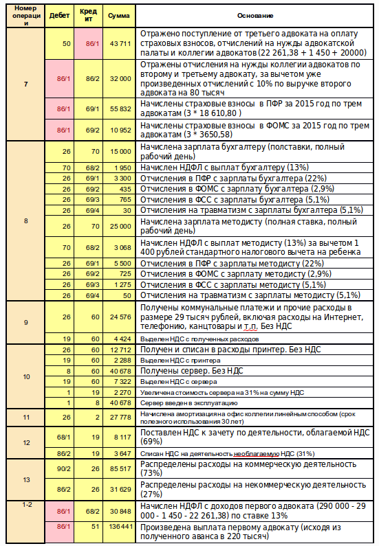 Данные «налоги» нам надо будет четко разделить на 2 части:- Начисления на адвокатов.