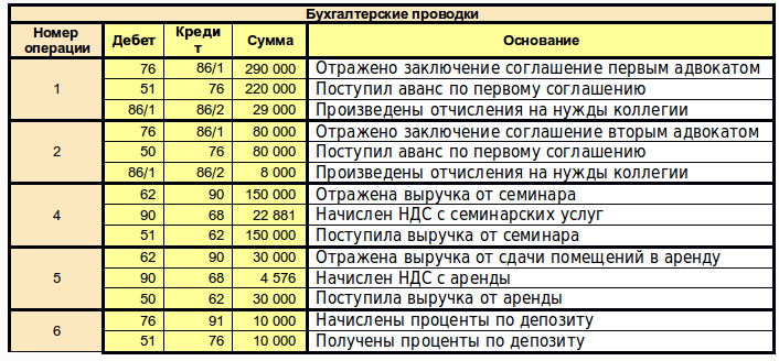 Учет на примере коллегии адвокатов: