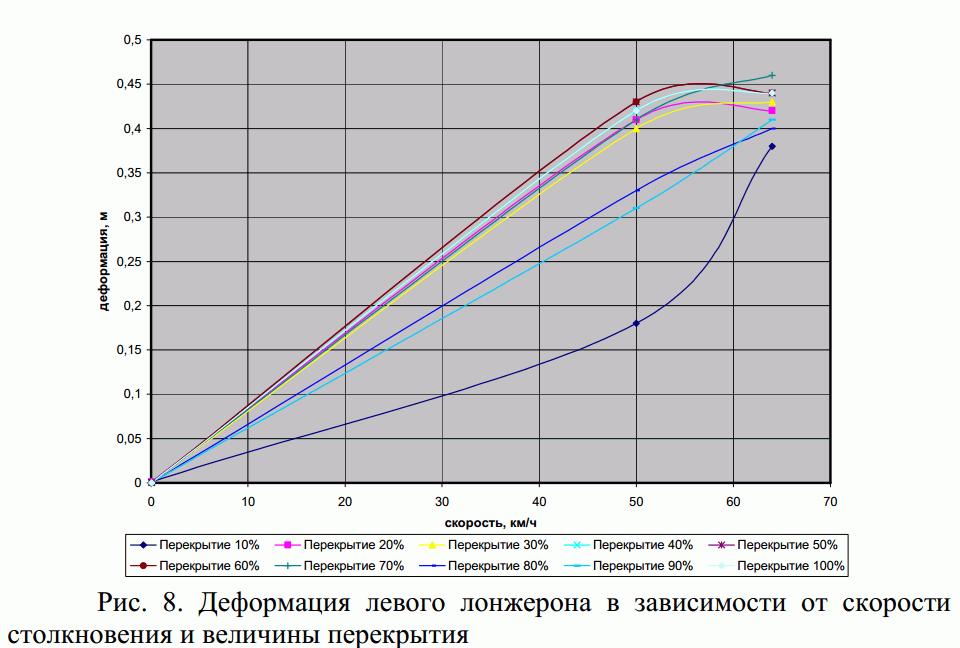 Из графика видно, что при деформации лонжеронов 10-20 мм очень далеко до скорости удара 20-30 км/ч по заявлению производителя.Но дабы не утруждать читателя проверкой автореферата А.В. Лемешкина, сразу приведем его фрагменты