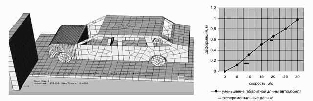 В статье рассматривается модель процесса наезда автомобиля ВАЗ-21099 на неподвижное препятствие, которая позволяет при экспертизе ДТП оценивать скорость движения автомобиля по характеру деформации элементов конструкции. Конечно-элементным расчетом получена зависимость уменьшения габаритной длины автомобиля от скорости наезда на неподвижное жесткое препятствие.Подина К. В., Микулич Е. М., Волчков В. М., Зотов Н. М., Комаров Д. Ю. Применение компьютерного моделирования при реконструкции ДТП // Известия Волгоградского государственного технического университета. Вып. 5, том 2. 2012.