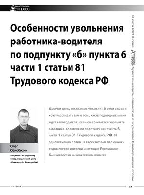 Добрый день уважаемые читатели! В этой статье я хочу рассказать Вам о том, какие «подводные камни» ждут работодателя, если он собирается увольнять работника-водителя по п.п. «б» п. 6 ч. 1 ст. 81 ТК РФ. И одновременно с этим, я расскажу Вам про ошибки судов первой и второй инстанций Республики Башкортостан на конкретном примере.Реквизиты дела: