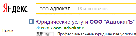 Если для Вас в таком виде высказывание неясно, то сформулирую иначе: в данном примере некие граждане рекламируют юридические услуги посредством сайта http://jur-kontora.ru, который продвигают через систему «Яндекс.Директ» с ключевыми словами «адвокат Тольятти». Использование ими ключевого слова «адвокат» незаконно, потому что они не имеют статуса адвоката. Единственно в этом — незаконном использовании термина «адвокат» — и заключается моя к ним претензия.