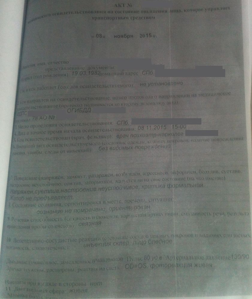 А «цензура» в акте то зачем в таком количестве? Ну ладно, затрите адрес, Ивановых в Питере тыщи. Или фамилия фельдшера? Пупкиных — не меньше… Номер акта зачем же было затирать… Вообще непонятно...