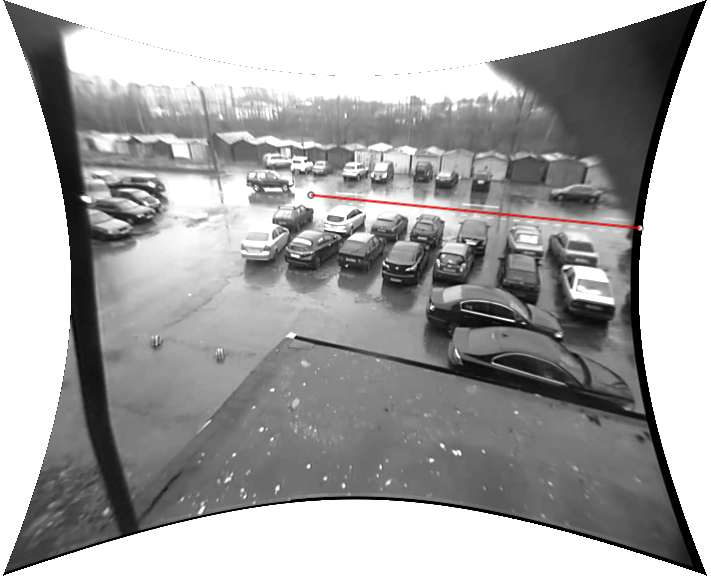 2) На фото у меня изображение одно и того же участка местности, снятые одной ТВ-камерой. Для коррекции искажений нам важны именно стационарные объекты (а не автомобили), имеющие гарантированно прямые элементы.