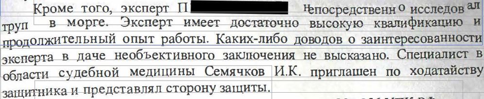 Отказывая защитнику в повторной судмедэкспертизе, судья расхвалила госэксперта и указала специалисту «на место» следующим образом: «Специалист в области судебной медицины Семячков А.К. приглашён по ходатайству защитника и предоставлял сторону защиты».