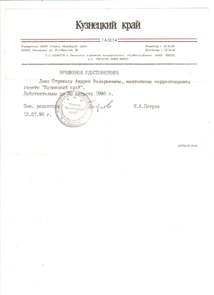 Понятно, что у юриста нет навыков написания журналистских текстов, ваша сила в другом. Уважаемая Марина Александровна, ну, как же нет. Очень даже есть. Вот и документ 20-ти летней давности в студию пожалуйста.
