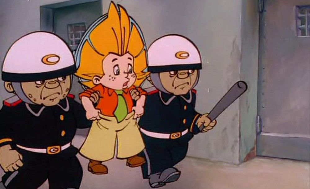 — А кто такие эти полицейские? — спросила Селедочка. — Бандиты! — с раздражением сказал Колосок. — Честное слово, бандиты! По-настоящему, обязанность полицейских — защищать население от грабителей, в действительности же они защищают лишь богачей. А богачи-то и есть самые настоящие грабители. Только грабят они нас, прикрываясь законами, которые сами придумывают. А какая, скажите, разница, по закону меня ограбят или не по закону? Да мне все равно! — Тут у вас как-то чудно! — сказал Винтик. — Зачем же вы слушаетесь полицейских и еще этих… как вы их называете, богачей? — Попробуй тут не послушайся, когда в их руках все: и земля, и фабрики, и деньги, и вдобавок оружие"!