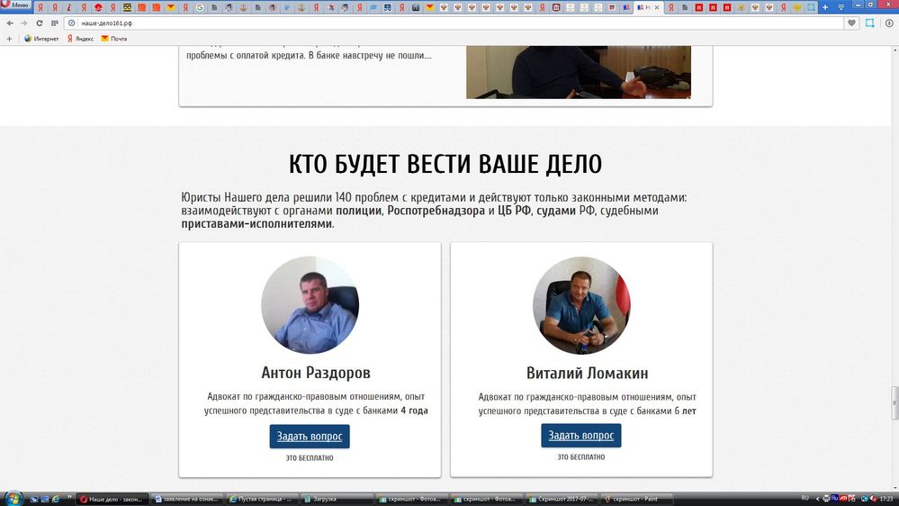 П.с. Кстати нас (меня и моих работников) бесплатные консультации не пугают, так как люди, которым непременно нужна бесплатная консультация и дешевые услуги, а еще лучше оплата после выигрыша дела просто не наши клиенты.