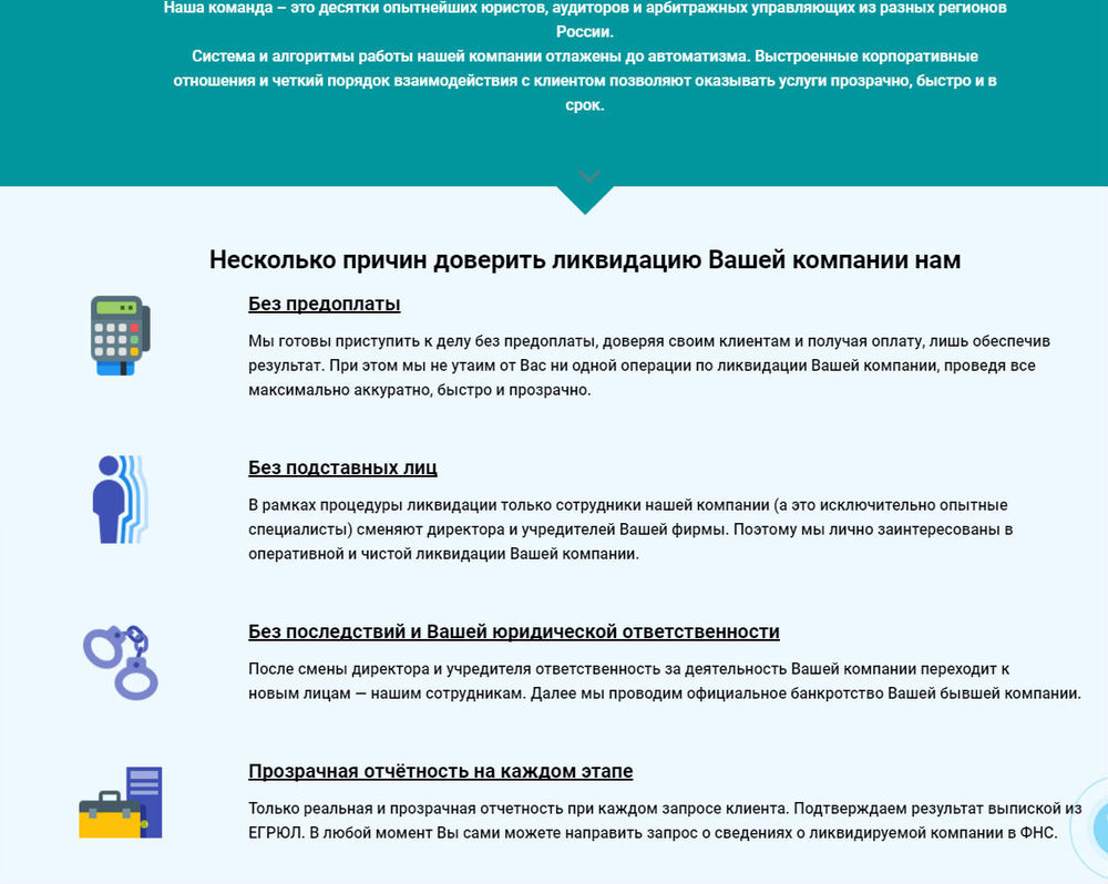 Для наглядной иллюстрации вышеизложенного, небольшой блиц-обзор, что предложил сегодня утром интернет при запросе «ликвидация ооо» в Москве и Краснодаре.