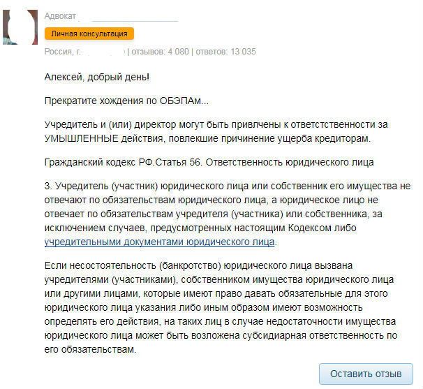 Для себя решил и свою помощь предлагать и просвещать: в объявлениях и на сайте советую заранее обращаться к юристам за консультациями, не обязательно ко мне и отправляю на «Праворуб», может кому-то поможет такой совет.