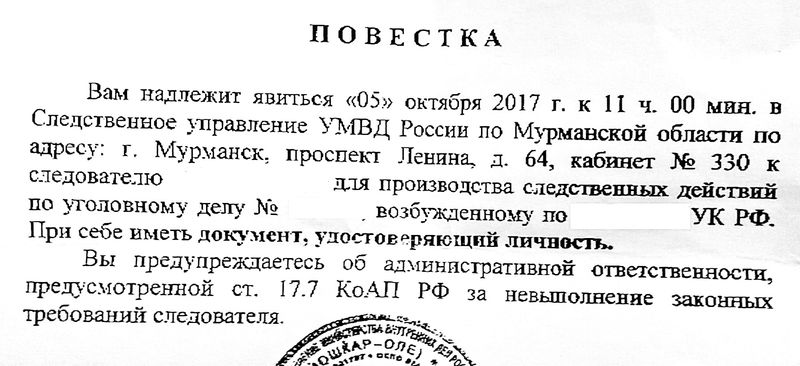 Один из адвокатов разъяснял, нет, не законность его (следователя) действий, а возможные для него последствия. Другой предупредил, что будет звонить в оперативно-розыскную часть собственной безопасности УМВД России по Мурманской области, и стал набирать номер телефона.