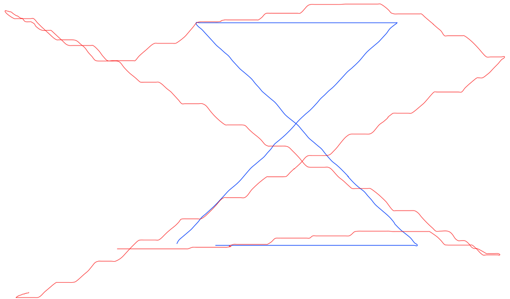 - График «песочные часы» выполненный прибором (синий) и человеком (красный)